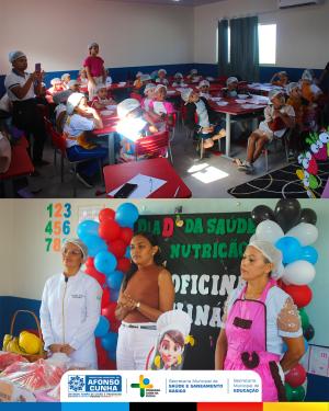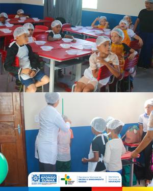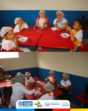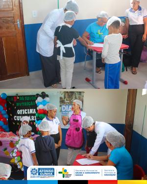 Na última semana, o corpo docente da Escola Municipal Antônio Pinto, em parceria com o Programa Saúde na Escola (PSE), a Secretaria Municipal de Educação e a Secretaria de Saúde e Saneamento Básico de Afonso Cunha, promoveu uma belíssima ação em alusão ao Dia D de Saúde e Nutrição. A atividade teve como ponto alto uma oficina de culinária educativa, especialmente voltada para as crianças da unidade escolar.